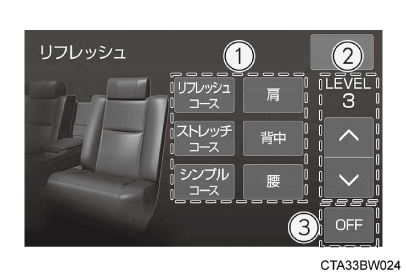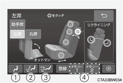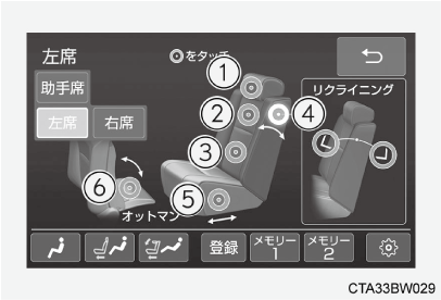 - 表示された操作スイッチをタッチして調整する操作スイッチをタッチしているあいだ、シートを調整することができます。