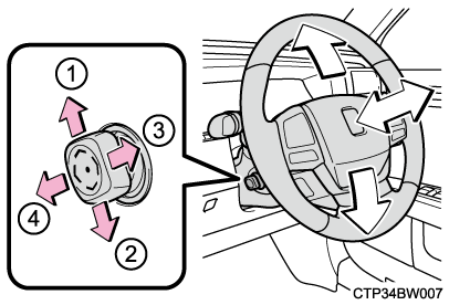 お好みのハンドル位置をマイコンプリセットドライビングポジションシステムに登録すると、自動で調整されます。(→パワーイージーアクセスシステム/マイコンプリセットドライビングポジションシステム/メモリーコール機能)