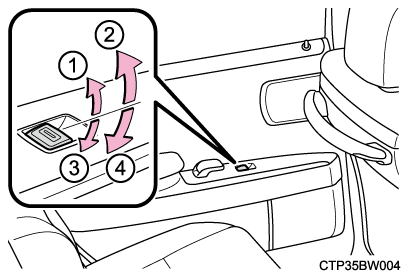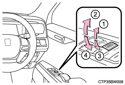 車を停止し、パワースイッチをONモードの状態で、挟み込み防止機能や、巻き込み防止機能が作動したあと約4秒以内に、パワーウインドウスイッチを「自動全閉」の位置で引き続ける。または、「自動全開」の位置で押し続けることでドアガラスを開閉することができます。