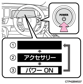 電子キーを携帯して次の操作を行うことで、ハイブリッドシステムの始動またはパワースイッチのモードを切りかえることができます。