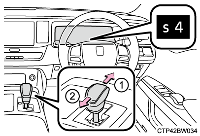 パワースイッチがONモードの状態で、ブレーキペダルを踏んだ状態でシフトレバーのボタンを押しながら操作します。