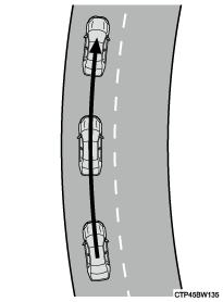 車線が整備された道路を走行中かつ、レーダークルーズコントロールの作動中に、車線や先行車/周辺車を前方カメラやレーダーで認識し、車線維持に必要なハンドルの操作を支援します。