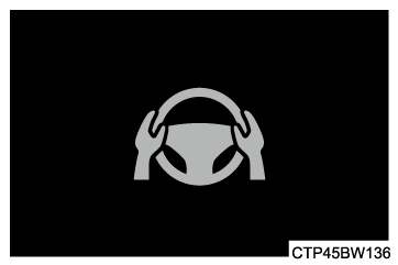 手放し運転をしているとシステムが判断したとき、ハンドル保持をうながすメッセージと図で示すシンボルがマルチインフォメーションディスプレイに表示され注意喚起を行います。ハンドルを握ったとシステムが判断すると、注意喚起を停止します。システムを使用する際は注意喚起にかかわらず、常にハンドルをしっかりと握ってください。