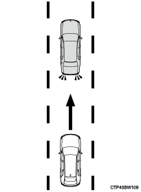 後方車両への接近警報は、同じ車線を走行する後方車両が追突の可能性が高い状況のとき、検知範囲に入った車両を検知します。