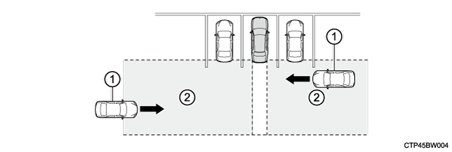 イラストは両後方から車両が接近している例です。 - 運転支援情報表示灯RCTAがOFFのときに点灯し、マルチインフォメーションディスプレイにメッセージが表示されます。
