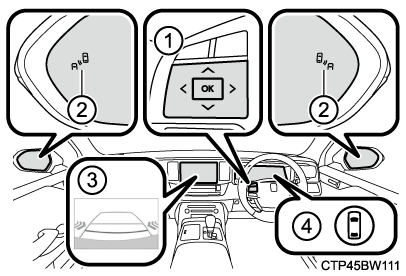 - メーター操作スイッチメーター操作スイッチを操作して、マルチインフォメーションディスプレイ上でRCTA機能のON/OFFを切りかえます。