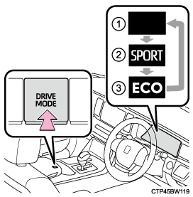 スイッチを押すごとに、走行モードがノーマルモード・スポーツモード・エコドライブモードの順に切りかわります。