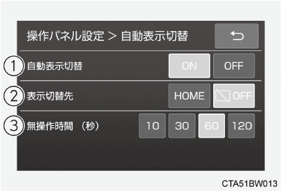 - HOME画面に切りかえるか画面表示を消すかを設定できます。