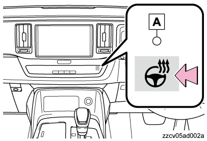 ステアリングヒーターがONのとき、スイッチのインジケーター
