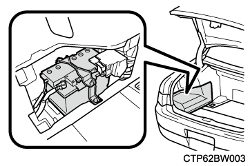 この車両の補機バッテリーはトランク(助手席側)のカバー内にあり、エンジンルームには搭載されていません。