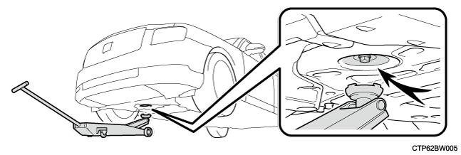 ガレージジャッキを使用して車両を持ち上げるときは、正しい位置にガレージジャッキをセットしてください。