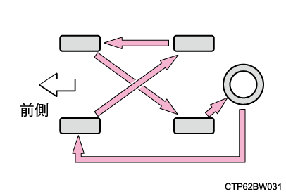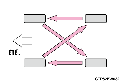 タイヤの摩耗を均等にし寿命をのばすために、タイヤローテーション(タイヤ位置交換)を10,000kmごとに行ってください。