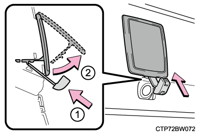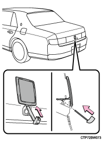 - メカニカルキーを、エンブレムとバックガイドモニターのカメラのあいだに挿し込む