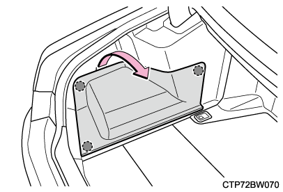 - トランクを開け、バッテリーカバーをはずすトランクオープナースイッチで開かない場合は、メカニカルキーで開けます。(→トランク)