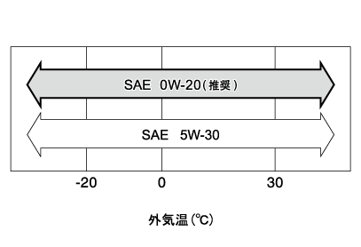 下記図に基づき、外気温に適した粘度のものをご使用ください。