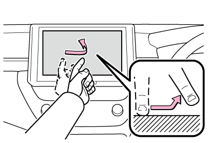 画面にふれた2本の指を広げたり近づけたりします。地図の拡大や縮小を行うことができます。
