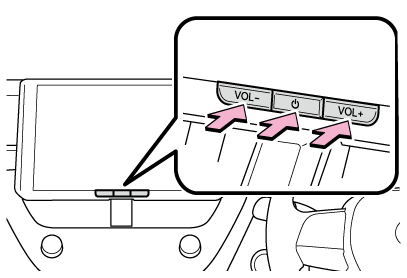[]スイッチ(10.5インチディスプレイ)または、POWER/VOLUMEノブ(8インチディスプレイ)を押す