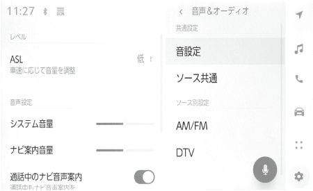 走行時の車速に応じて、オーディオの音量を自動で補正するレベルを設定できます。