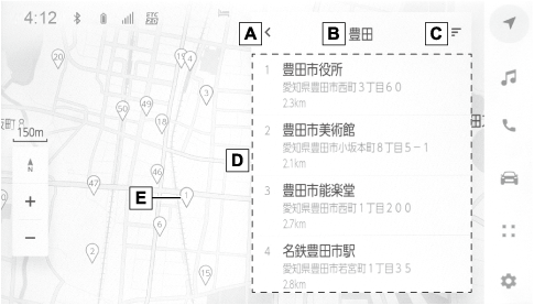 目的地を検索したとき、検索結果が複数あった場合、検索結果リストが表示されます。