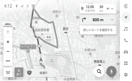 比較画面を表示中に操作しなかったとき、または新ルートと元ルートの分岐点を通過したときは、元ルートで案内します。