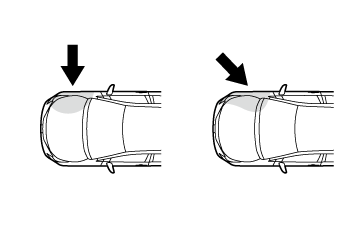 フロントSRSエアバッグは、側面や後方からの衝撃・横転・または低速での前方からの衝撃では、通常は作動しません。ただし、それらの衝撃が前方への減速を十分に引き起こす場合には、フロントSRSエアバッグが作動することがあります。