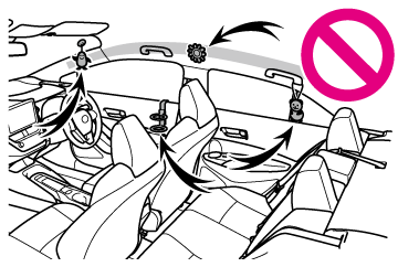 ドア・フロントウインドウガラス・ドアガラス・フロントピラーおよびリヤピラー・ルーフサイドレール・アシストグリップなどには何も取り付けない(速度制限ラベルを除く →タイヤパンク応急修理キットの内容/各部の名称)
