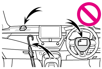 ダッシュボード・ハンドルのパッド部分などには何も取り付けたり、置いたりしない