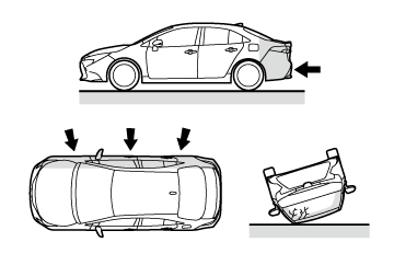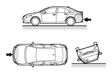 次のような状況で車両下部に強い衝撃を受けたときも、フロントSRSエアバッグとSRSカーテンシールドエアバッグが作動する場合があります。