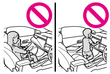 お子さまを助手席SRSエアバッグの前に立たせたり、ひざの上に抱いたりしない