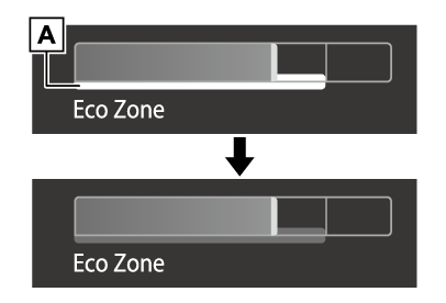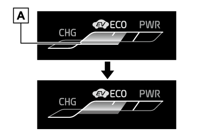 ガソリンエンジン停止中や、電気モーターのみで走行しているときに、EVインジケーターが点灯します。