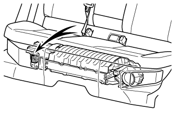 サービスプラグが駆動用電池に設置してあります。サービスプラグは絶対にさわらないでください。サービスプラグは、トヨタ販売店での車両の修理時などに、駆動用電池の高電圧を遮断するためのものです。