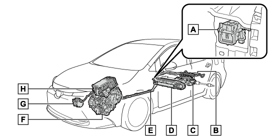 ハイブリッドシステムには、駆動用電池・パワーコントロールユニット・オレンジ色の高圧ケーブル・電気モーターなどの高電圧部位(最高約600V)や、冷却用ラジエーターなどの高温部位がありますので、ご注意ください。ご使用前に、ここで説明している内容をよくお読みいただき、正しく取り扱ってください。なお、高電圧部位には、取り扱い上の注意喚起のため表示を含んだラベルが貼付されています。