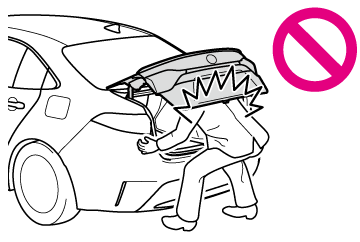 トランクリッドにトヨタ純正品以外のアクセサリー用品を取り付けないでください。トランクリッドの重量が重くなると、開いたあとに突然閉じるおそれがあります。