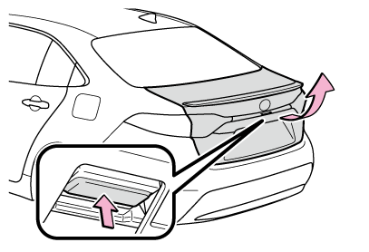 すべてのドアが施錠されている場合、トランク内に電子キーを置いたままトランクを閉めると、警告音が鳴ります。この場合、車外にあるトランクオープンスイッチで開けられます。