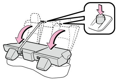 リヤシートの背もたれを前方に倒す前に、フロントシートの位置を調整して、リヤシートの背もたれを倒したときに、リヤシートの背もたれがフロントシートに干渉しないようにしてください。