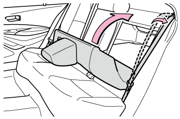 シートベルトが背もたれ固定フックに挟まり、シートベルトを損傷させるおそれがあります。