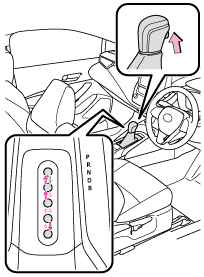 シフトレバーがNでは、ガソリンエンジンが回転していても駆動用電池は充電されないため、Nで長時間放置すると駆動用電池の残量が低下し、走行不能になるおそれがあります。