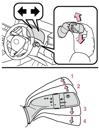 (レバーを途中まで動かして離す)左側方向指示灯が5 回点滅します。 - 右側へ車線変更