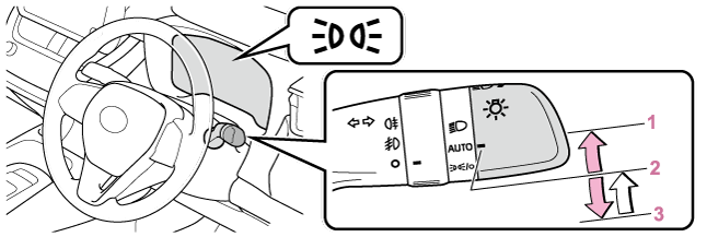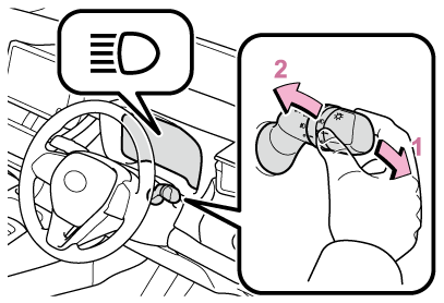 停車中のみ点灯可能。車両を発進させると2による点灯状態に切りかわります。