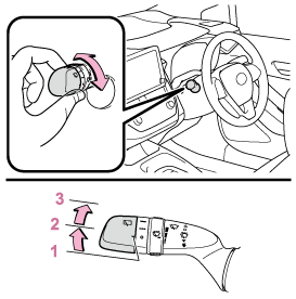 レバーを前方へ押すとワイパーと連動してウォッシャーが作動します。