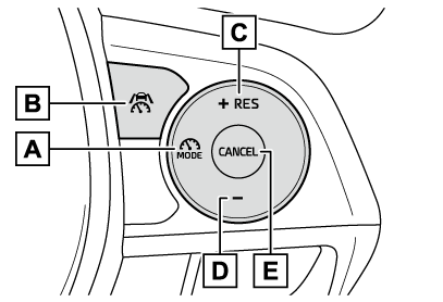 1. 走行支援モード選択スイッチを押してクルーズコントロールを選択する