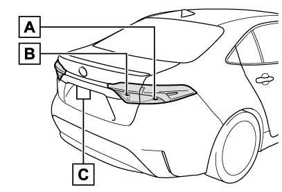 リヤ方向指示灯/非常時点滅灯・後退灯・番号灯以外のランプは、数個のLEDで構成されています。もしLEDがひとつでも点灯しないときは、トヨタ販売店で交換してください。