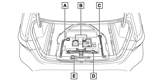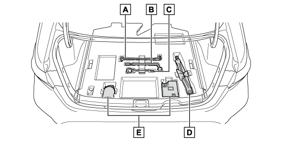 タイヤパンク応急修理キット装着車には、スペアタイヤ、ジャッキ、ジャッキハンドル、ホイールナットレンチが搭載されていません。