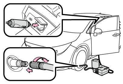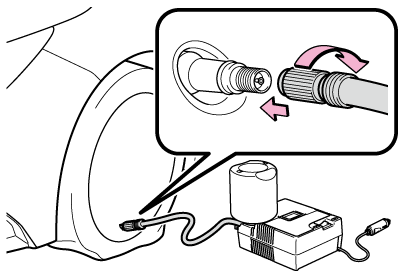 タイヤがパンクしたときは、タイヤパンク応急修理キットで応急修理することができます。釘やネジなどが刺さった程度の軽度なパンクを応急修理できます。(パンク補修液1本につき、応急修理できるタイヤは1本です)パンクしたタイヤの損傷状況により、応急修理キットでは応急修理できない場合があります。(→応急修理する前に)