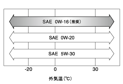 0W-16 の16 は、高温時の粘度特性を示しています。