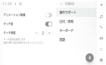 時刻設定や表示言語など、マルチメディアシステムの基本設定を変更できます。