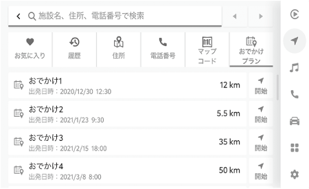 8. スマートフォンからあらかじめ送信されたおでかけプランの地点のリストを表示します。(→おでかけプランで目的地を検索する