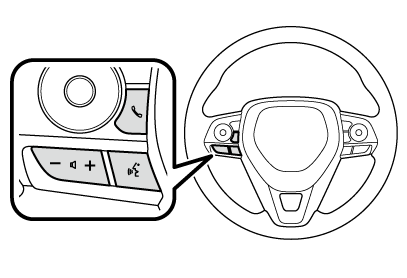 電話を受ける/かけるなど、一部のハンズフリー電話機能をステアリングスイッチから操作できます。マルチメディアシステムの状態によって、ステアリングスイッチの機能がかわります。