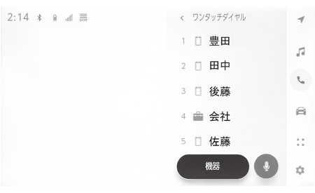 よくかける電話番号をワンタッチダイヤルに登録する(→ワンタッチダイヤルを登録する)ことで、簡単な操作で電話をかけることができます。ワンタッチダイヤルは走行中でも使用できます。