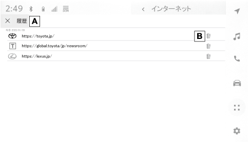 • 閲覧履歴は最大100 件まで保存できます。閲覧履歴が100 件を超えたときは、古い履歴から自動的に削除されます。